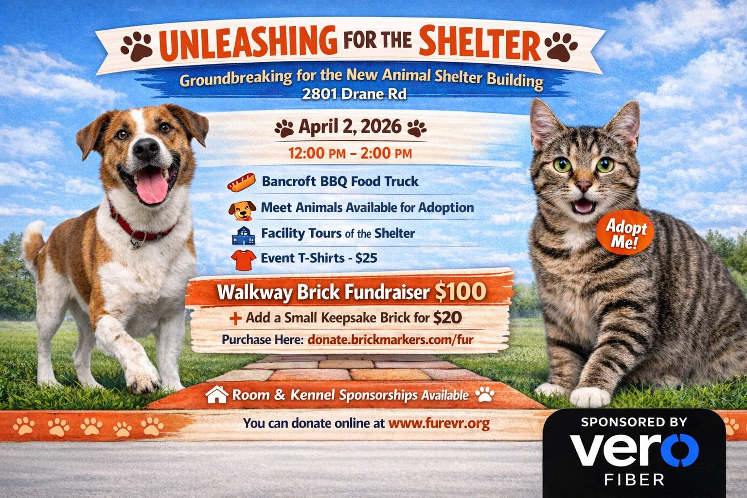 Join us for the groundbreaking of the animal services center on April 2nd from noon-2p located at 2801 Drane Rd. There will be food, pet adoption, facility tours and more!